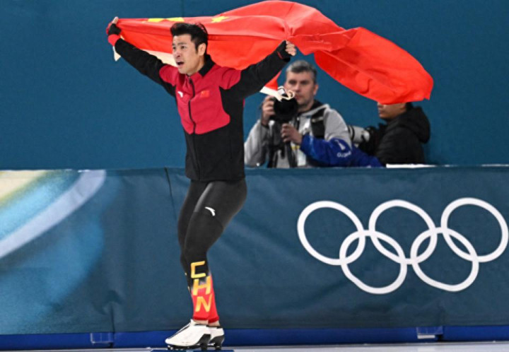 在速度滑冰1500米及其以上距离,中国乃至全亚洲选手,此前都没有奥运金牌战绩。宁忠岩这一刻,已经站在历史最高点。